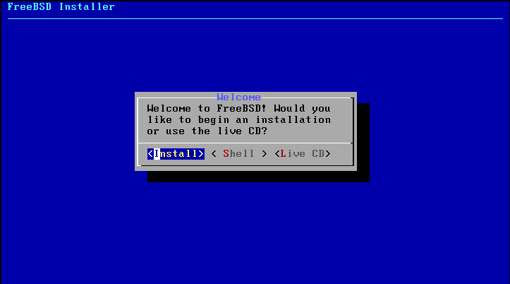 trascorsi 10 secondi il sistema si avvierà automaticamente e verrà presentato l'installer di FreeBSD.