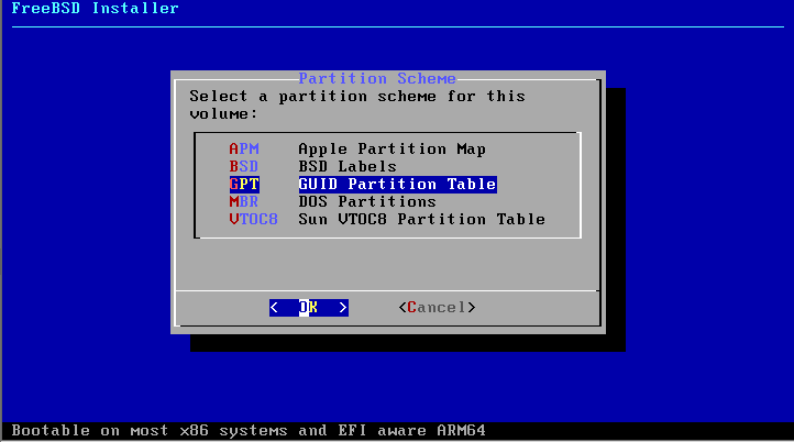 Il filesystem di default su FreeBSD è UFS, mentre ZFS è un file system avanzato che presenta molte caratteristiche importanti ma che per ora tralasciamo perchè non oggetto di questo tutorial. Sottolineamo soltanto che per avere delle buone performance con il filesystem ZFS bisogna avere almeno 4 GB di RAM.