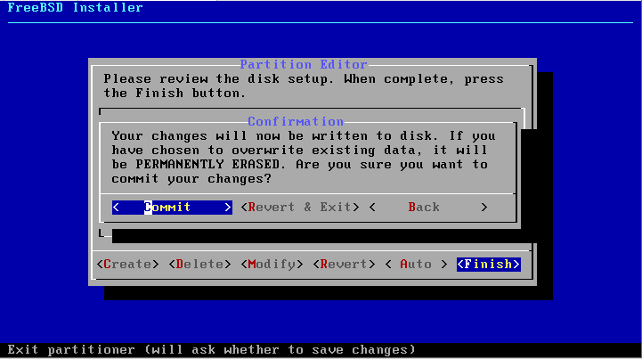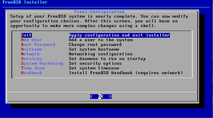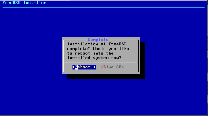 e confermare con invio per uscire dalla shell di FreeBSD e tornare all'installer.