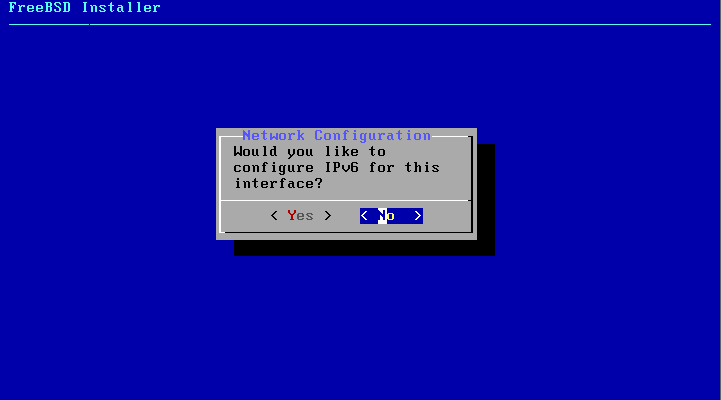 Qui viene chiesto se volete configurare la rete utilizzando anche il protocollo IPv6. Come detto in precedenza selezionate "No" e premete invio per confermare.
