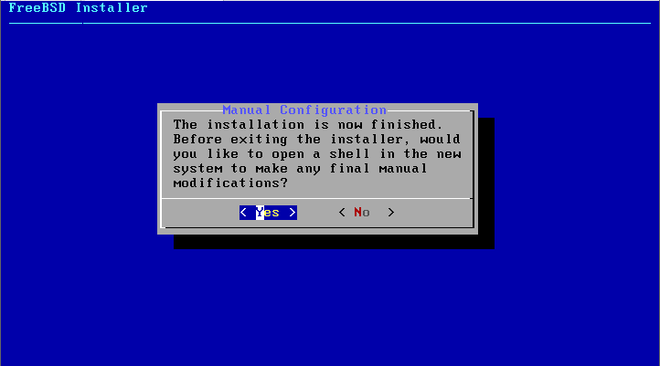 Come parte del tutorial faremo una piccola configurazione del sistema, ma questa parte è del tutto opzionale, quindi se non avete dimestichezza con la shell di FreeBSD e con l'edit vi potete selezionare l'opzione "no" e confermare con invio.