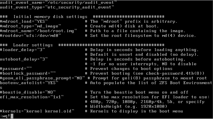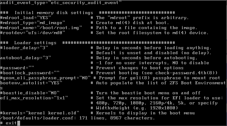 Su un server questo ritardo non è normalmente richiesto, quindi andremo a modificare il file loader.conf in modo da portare questo ritardo a 3 secondi.