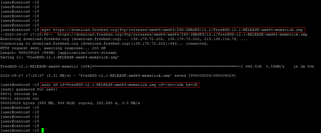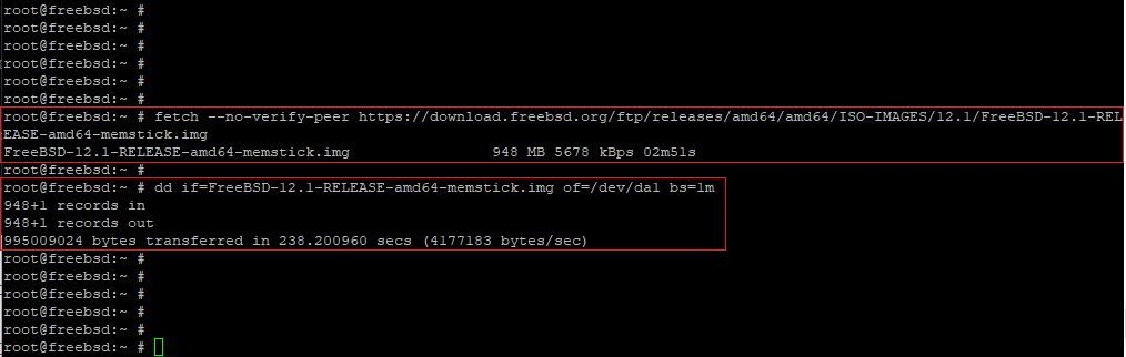 sudo dd if=FreeBSD-12.1-RELEASE-amd64-memstick.img of=/dev/sdX bs=1M