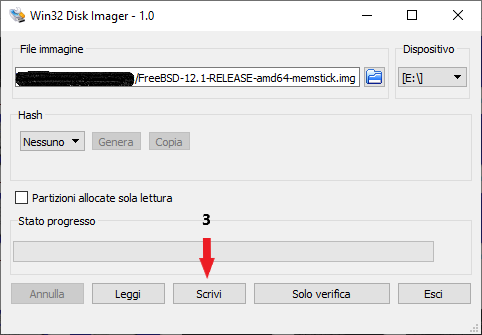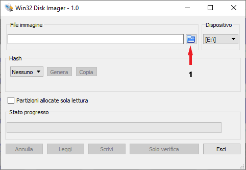 Su Windows, il modo più semplice per trasferire l'immagine di installazione sulla chiavetta USB è utilizzare un software che si chiama Win32 Disk Imager che può essere scaricato da qui.