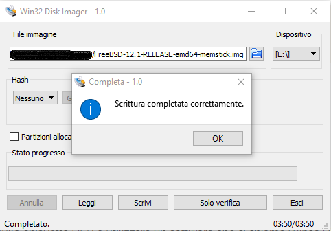 A questo punto non ci resta che scaricare l'installer dal sito web di FreeBSD e trasferirlo sul dispositivo USB con i seguenti comandi